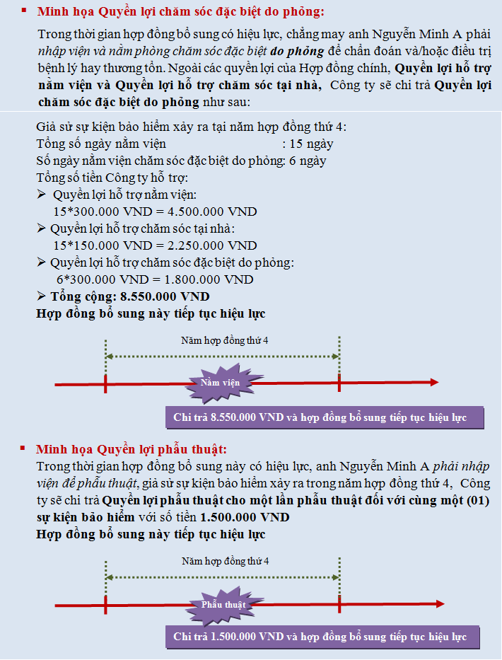 Chi trả thêm 100% Số tiền hỗ trợ nằm viện cho mỗi ngày nằm viện chăm sóc đặc biệt ngoài Quyền lợi hỗ trợ nằm viện (tối đa 30 ngày)